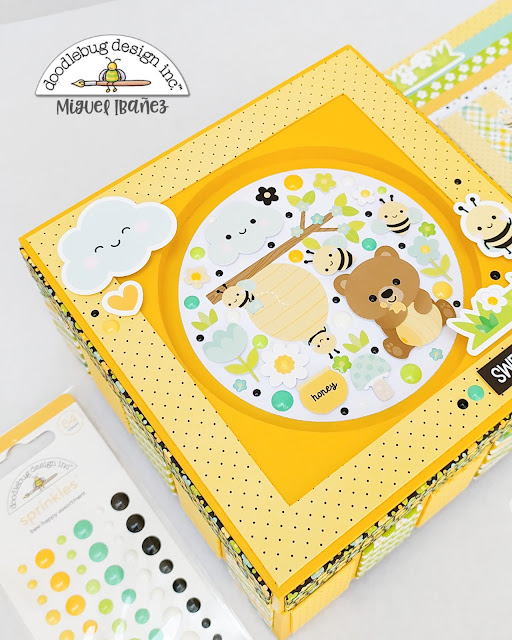 Bringing wooden pieces to life is something I truly enjoy. It allows me to further develop my creativity and achieve incredible results. And of course, always with the help of Doodlebug products. Look how beautifully I decorated this box with the Bee Happy collection.